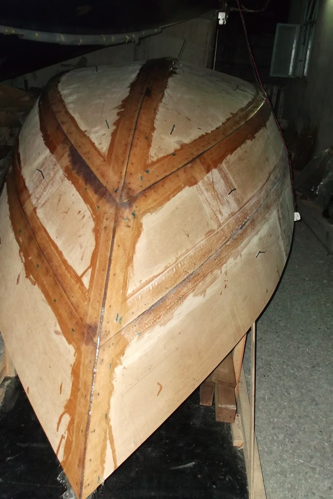 | Transom holding on tight. central part not glassed as we might have to add a few wood pieces to it first. |